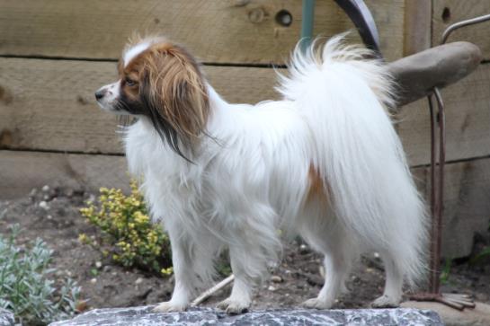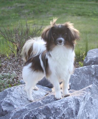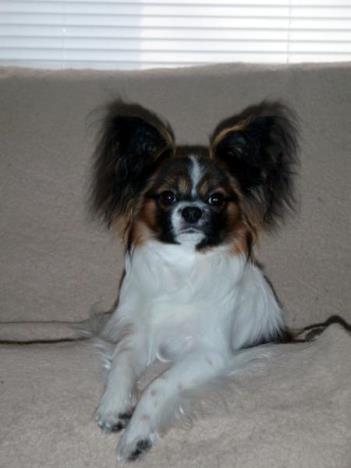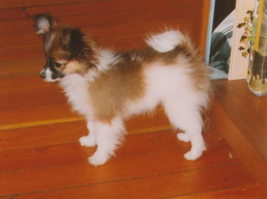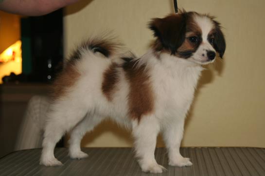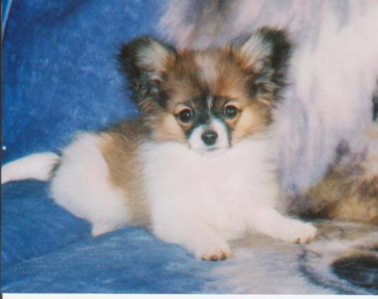 Casey is a wonderful little girl. She has absolutely beautiful phalene ear set and is maturing out quite nicely. We hope to have her in some shows this year and it will be fun to see how we all get on!!
