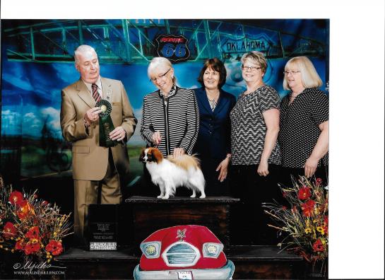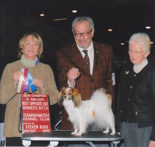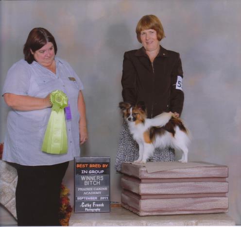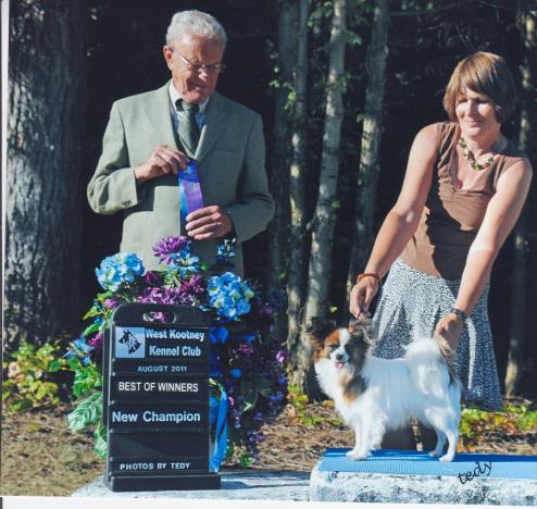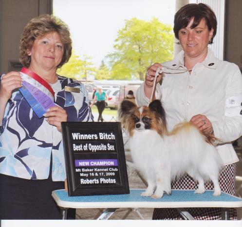 Christie was a bit unexpected but there she was and I decided to show her. She was just over 9" and quite fun to show. She finished her title under breeder/judge Michael Hill. She is now in a home with another papillon and both of them are ruling the house!!