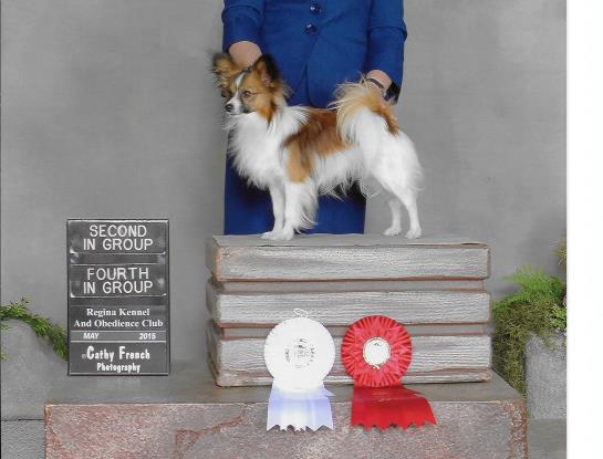 Next came her Grand Championship which she completed in less than 3 week-ends at the shows and along the way picking up another 2 Best Puppy in Groups, a Group 2nd and a Group 3rd!! All this achieved by 11 months old. Pretty good going for a little phalene!!!